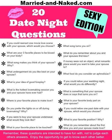 It's important to remember that there are no right or wrong answers to these questions. The goal is simply to learn more about your partner and to create a safe and comfortable space where you can both express your needs.